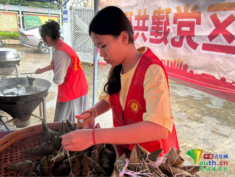 图为志愿者将粽子捆绑好。施雯颖 供图
