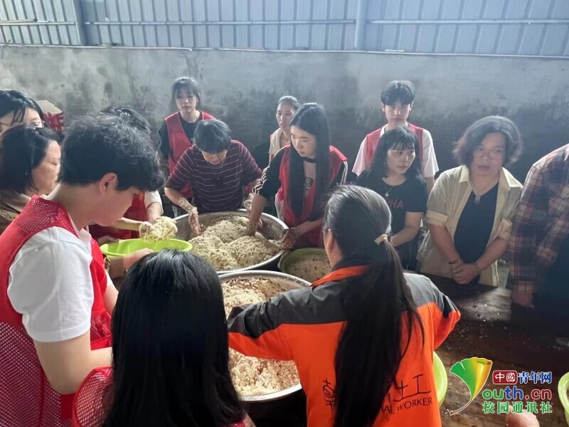 图为志愿者与社区居民共同清洗大米。中国青年网通讯员 熊怡静 摄