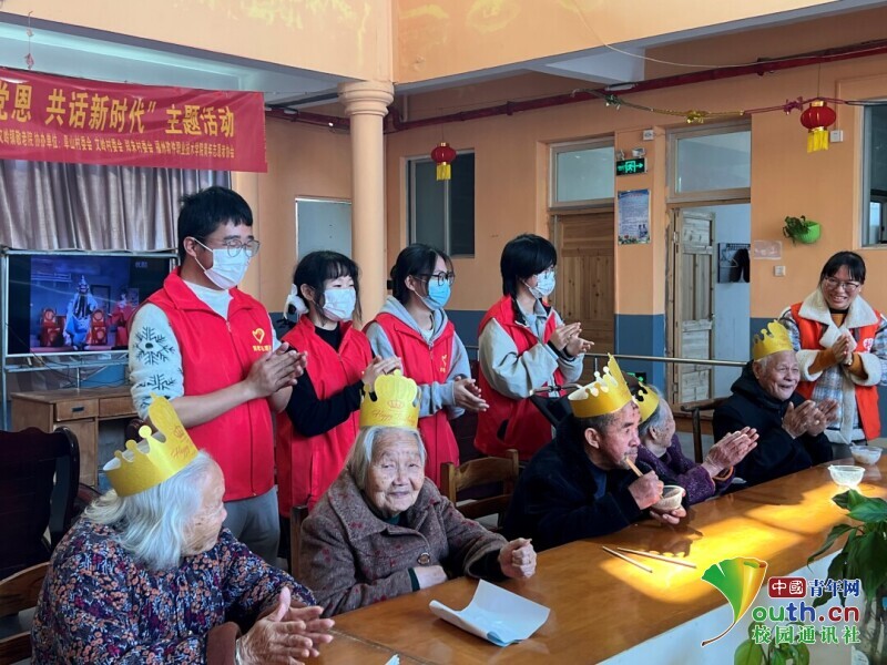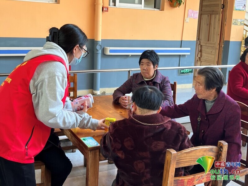 图为团队成员走进文岭镇敬老院内为老人送上专属祝福。中国青年网通讯员 黄雪 摄