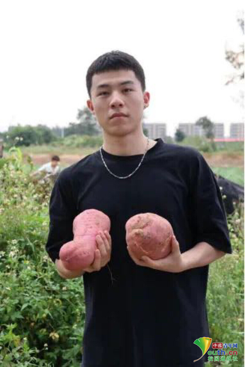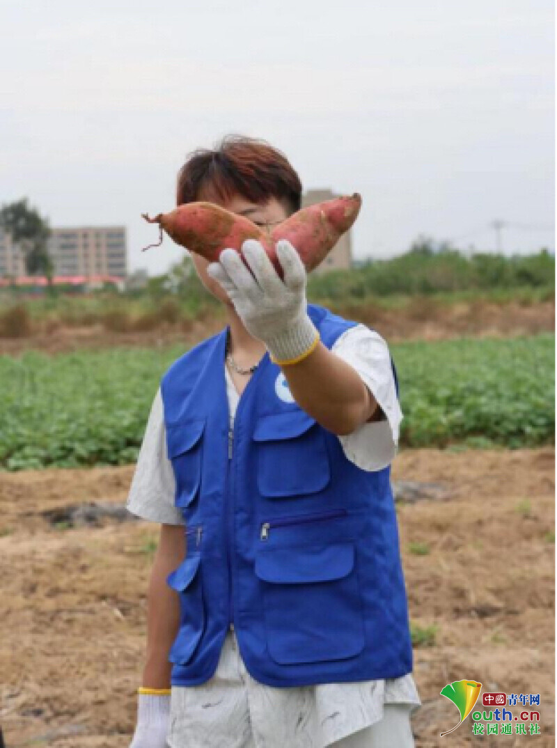 图为师生们在责任田上除草,收获成熟的红薯。中国青年网通讯员 许玉立 苏思瑜 摄