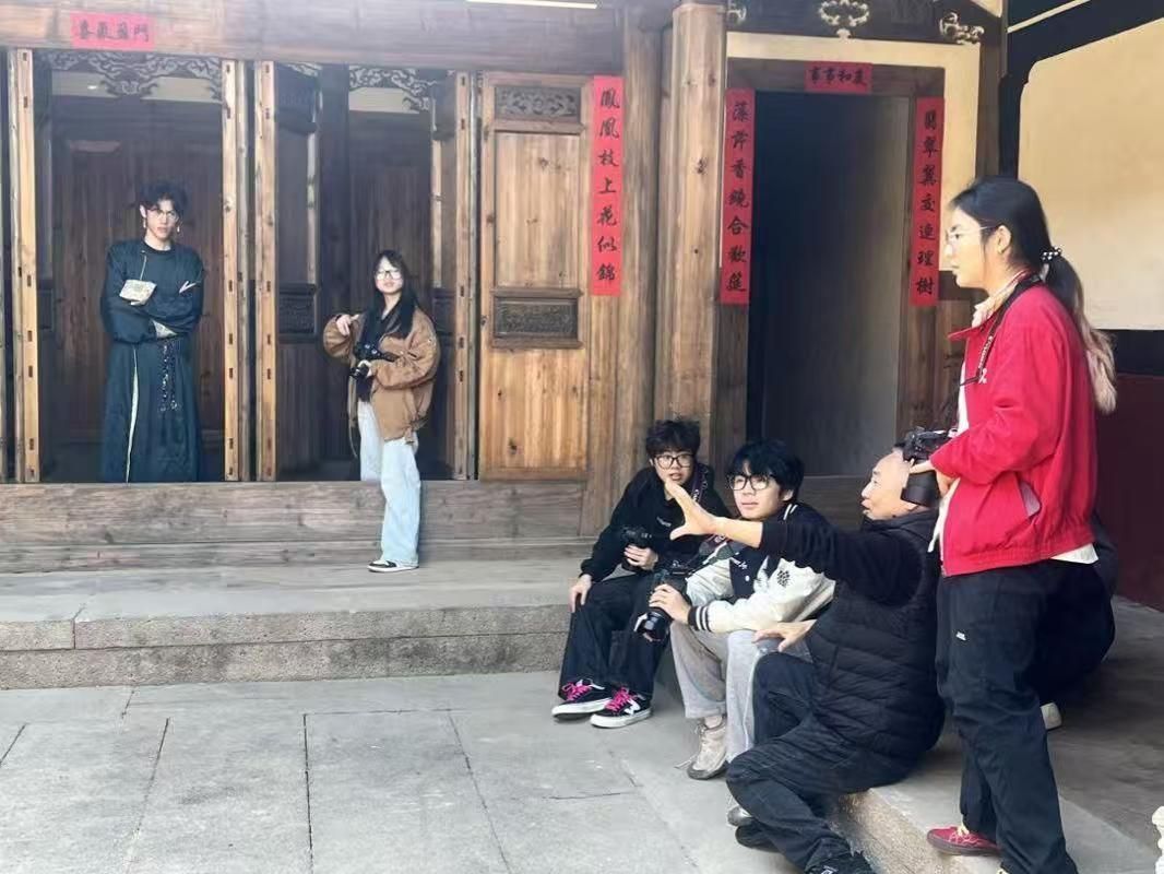“这不仅是摄影课的外拍实践,更是一堂沉浸式的文化美学课。”产业副院长张雨东表示,“我们试图通过镜头,完成三重表达:一是记录文保建筑的本体价值,二是演绎传统文化的生活场景,三是传递古今对话的审美意象。”学生摄影师们则借助中长焦、广角及微距镜头,从宏观场景到雕刻细部,多维度构建影像档案。