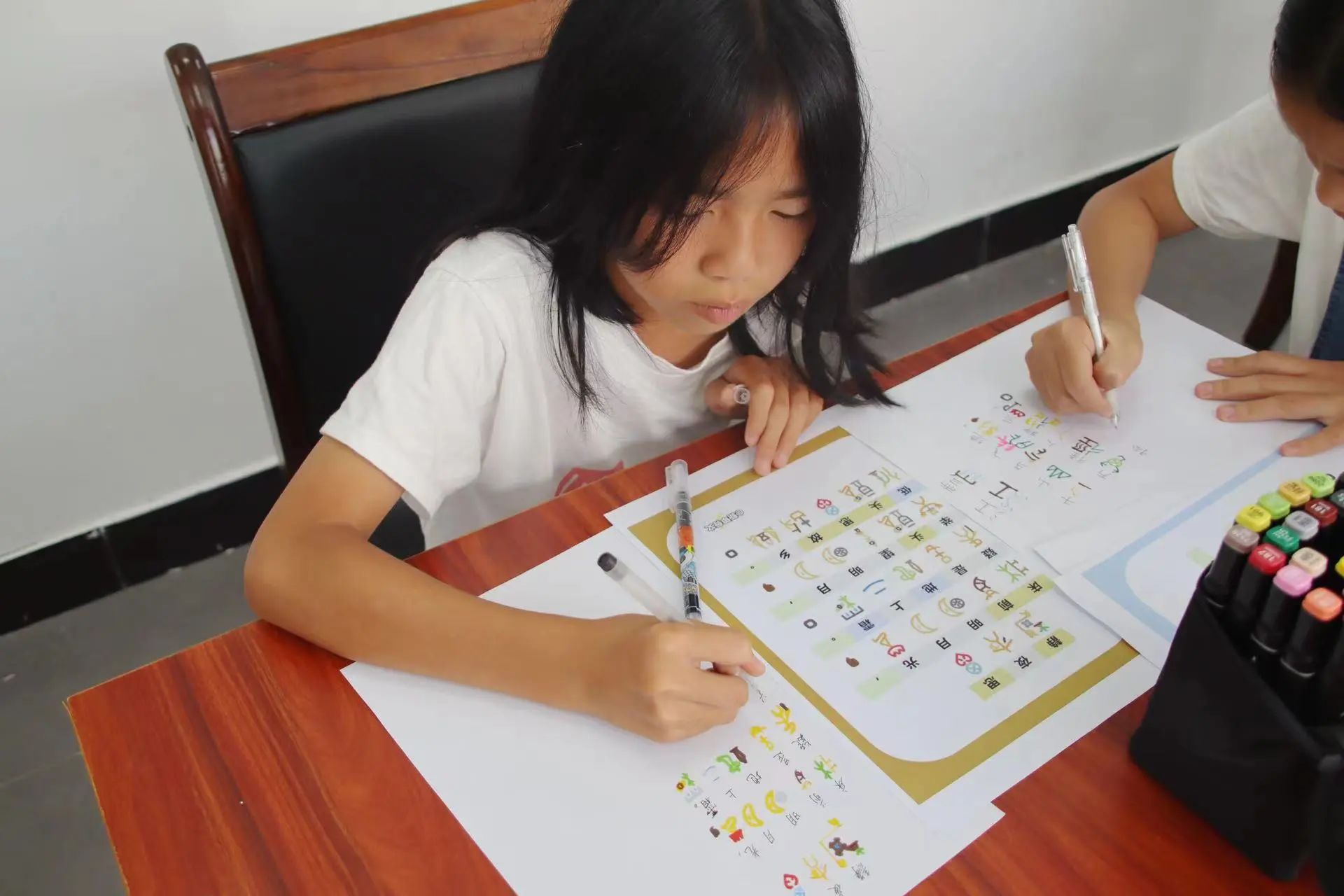 让古老文字,焕发新生,与新时代共舞,永不落幕,实践队员带领小朋友们将耳熟能详的古诗精妙转化为甲骨文形态,再制作成趣味甲骨文画,一笔一画、横撇竖捺,巧妙地将文字融入画面,充分体现了甲骨文“书画同源”的艺术特点。帮助孩子们更好的了解甲骨文,感知汉字的奇妙。