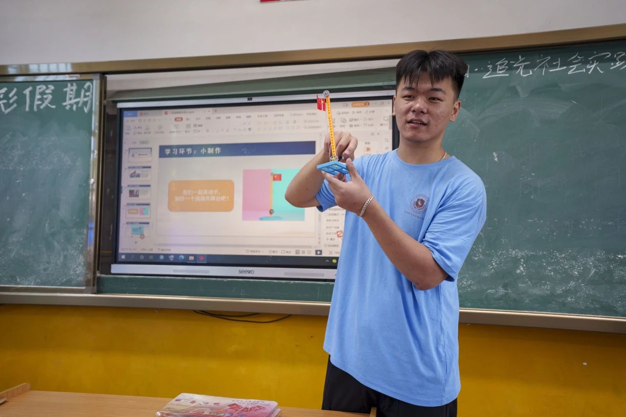 课程的最后,由实践队队员带领下进行国旗制作,这一互动环节不仅激发了小朋友们对科学的兴趣,也增强了他们的爱国情怀,让他们在实践中感受到了国旗的神圣与尊严。
