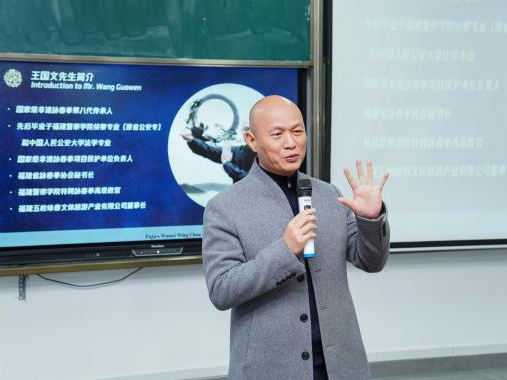 为扎实推进团员和青年学习贯彻习近平新时代中国特色社会主义思想主题教育,弘扬优秀传统文化,丰富校园文化生活,传播中华武德精神,加大非遗詠春拳的文化传播,提升学生综合素养,欧洲杯投注平台_欧洲杯正规平台_欧洲杯体育平台【官方授权】:团委于2023年12月13日上午10:30在教学楼A505开展国家非遗詠春拳进校园专题讲座,特邀国家非遗詠春拳项目保护单位传承人王国文老师作为主讲老师,福建省福至心灵助学服务中心林建玲主任及其团队代表、国家非遗詠春拳项目保护单位团队代表及欧洲杯投注平台_欧洲杯正规平台_欧洲杯体育平台【官方授权】:师生代表共计110多人参与本次活动。