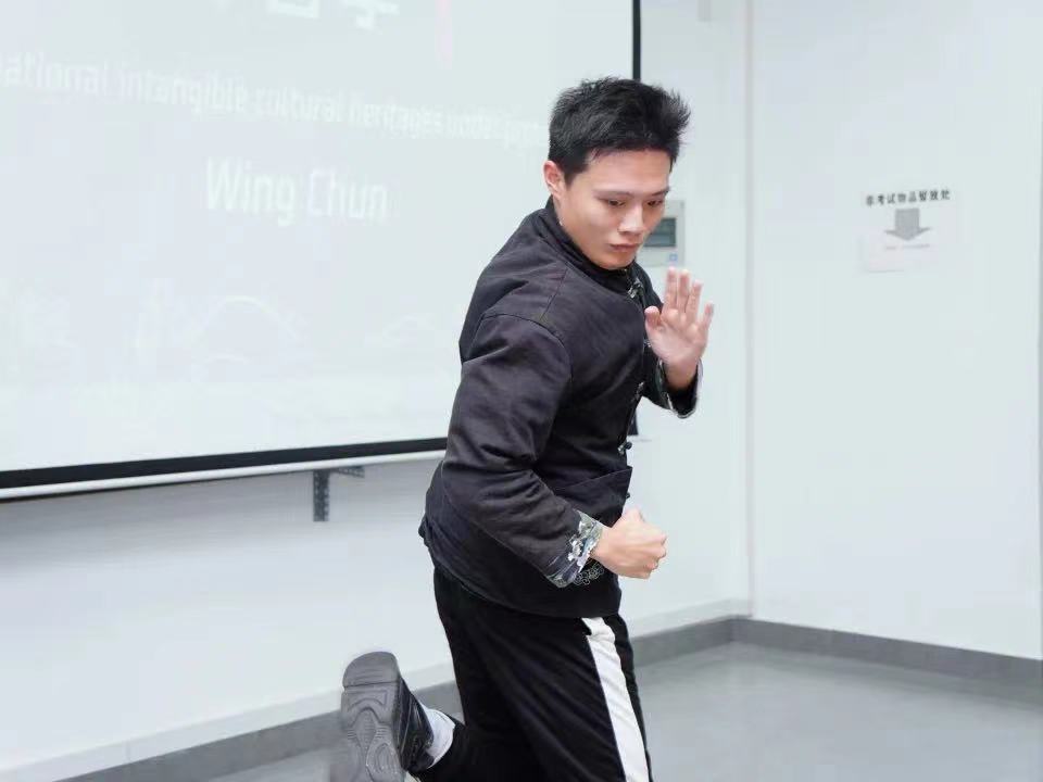 了解完詠春拳的历史和精髓,由国家非遗詠春拳项目团队教练陈致鼎老师进行现场展示,让现场的同学们大开眼界,惊叹连连!