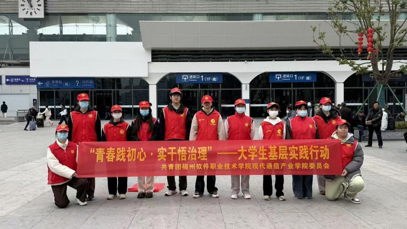 为深入学习领会党的二十大和二十届历次全会精神,践行社会实践育人理念,推动“返家乡”社会实践与高校“大思政课”建设深度融合,福州软件职业技术学院现代通信产业学院于2026年2月组织学子开展寒假“返家乡”系列社会实践活动。学子们以青春之名扎根基层、奔赴一线,在春运服务、社区治理、乡村振兴等岗位上躬身实践,用实干担当诠释青年使命,让青春之花在服务家乡、奉献社会的实践中绚烂绽放。