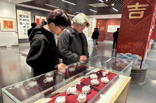 最后,饮水思源寒假社会实践服务队来到了陈吉书法艺术作品展。此次展览主题为“福语吉言”,字面意义为祝福语与吉祥话。然而,其内涵更深一层:“吉”字代表陈吉本人,他既是书法家,又是福文化研究专家。因此,书写“福”字并传递祝福,既是他的本职工作,也是他应当承担的责任。展览不仅展示了陈吉先生近年来创作的书法佳作,还呈现了一系列他与陶瓷、建盏、紫砂壶、剪纸、茶艺、石雕等非物质文化遗产项目的跨界融合文创产品。这些产品的创新思维和精美制作令人眼前一亮。