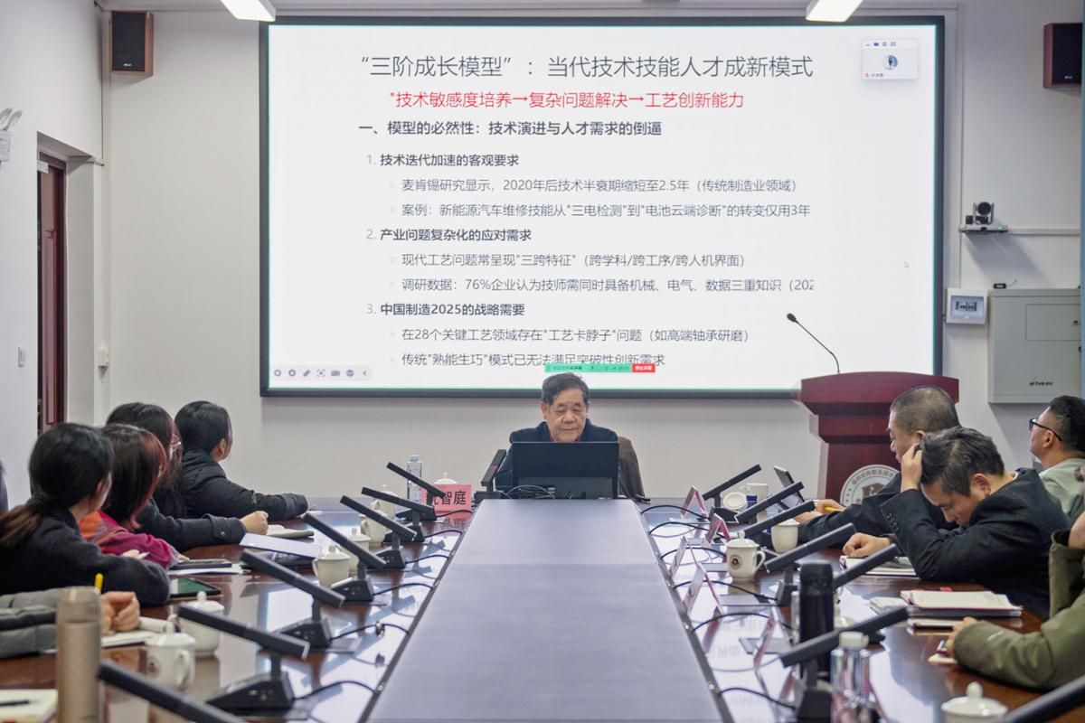 在此理论框架下,祝教授进一步构建了三位一体的实践体系:以“三阶成长模型”规划了从技术敏感度到复杂问题解决、再到工艺创新能力的进阶路径;以“天工智慧沙盘”作为核心操作平台,通过16宫格生态地图与红色工单机制,打造连接真实产业的实战化教学环境;并以由教师、技师与AI助教协同的“三体能师组” 创新架构,破解双师型师资短缺难题,为新时代高素质技术技能人才的成长提供全方位、立体化的支撑。