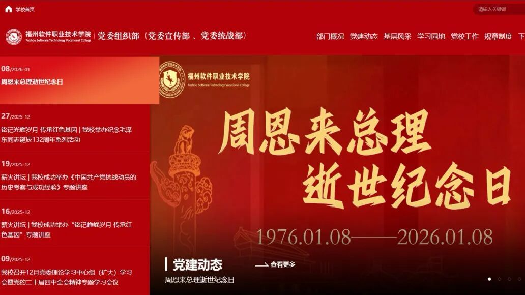 2026年1月8日,是周恩来总理逝世50周年纪念日。学校党委统筹部署,联合多部门协同联动,以线上线下融合宣传、红色研学溯源、经典观影共情为核心载体,精心组织开展系列纪念活动。全校师生齐聚追思、深切缅怀,在感悟周总理“鞠躬尽瘁、死而后已”的公仆风范中传承“为中华之崛起而读书”的初心使命,推动红色基因深度融入育人全过程,让伟人精神成为激励师生奋进新征程的强大精神引擎。
