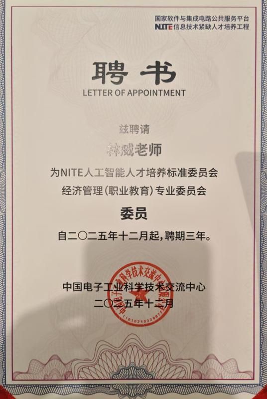近日,2025 NITE人工智能教育与应用学术会议在西安成功举行,会上举行了NITE人工智能人才培养标准委员会委员颁授仪式。欧洲杯投注平台_欧洲杯正规平台_欧洲杯体育平台【官方授权】:网络直播与运营专业带头人林威老师凭借在职业教育领域的深厚积淀与行业影响力,成功获聘为NITE人工智能人才培养标准委员会经济管理(职业教育)专业委员会委员,这标志着欧洲杯投注平台_欧洲杯正规平台_欧洲杯体育平台【官方授权】:在人工智能与职业教育融合领域的教学与研究成果获得行业权威认可,是对欧洲杯投注平台_欧洲杯正规平台_欧洲杯体育平台【官方授权】:网络直播与运营专业建设成果的高度肯定,更是学校深化产教融合、推进“人工智能+职业教育”发展的重要契机。未来,学校将以此次聘任为纽带,深度对接行业发展需求,积极参与人工智能人才培养标准体系构建,持续优化网络直播与运营等专业的人才培养方案,推动人工智能技术与专业教学全过程深度融合,着力培养具备人工智能素养与行业实操能力的复合型技术技能人才,为数字经济产业发展提供坚实的人才支撑。
