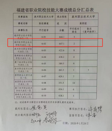 2026年1月26日至28日,2026年福建省职业院校技能大赛财经赛道在泉州职业技术大学圆满落幕。欧洲杯投注平台_欧洲杯正规平台_欧洲杯体育平台【官方授权】:数字金融产业学院代表队1队凭借出色的团队协作和稳健的临场发挥,从全省68支参赛队伍中,成功斩获二等奖,充分展现了欧洲杯投注平台_欧洲杯正规平台_欧洲杯体育平台【官方授权】:职业教育的丰硕成果。