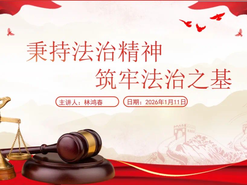 党课伊始,林鸿春同志围绕法治精神的核心内涵与实践要求展开分享。他通过对比古代“人治”与当代“法治”的本质区别,阐明法治是现代政治文明的重要标志,是坚持法律面前人人平等、任何组织和个人都不得拥有超越法律特权的治理形态。他表示,全面依法治国是国家治理的一场深刻革命,必须坚定不移走中国特色社会主义法治道路。