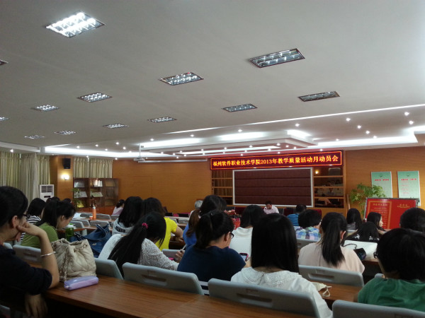 1016下午,教务处在会议室召开2013学年“教学质量提升月”动员大会。院党委书记吴彬镪、院长林国荣、副院长任直、教务处副处长林土水、师资科科长黄丽青和各专业教师参加了会议。会议由林土水副处长主持。